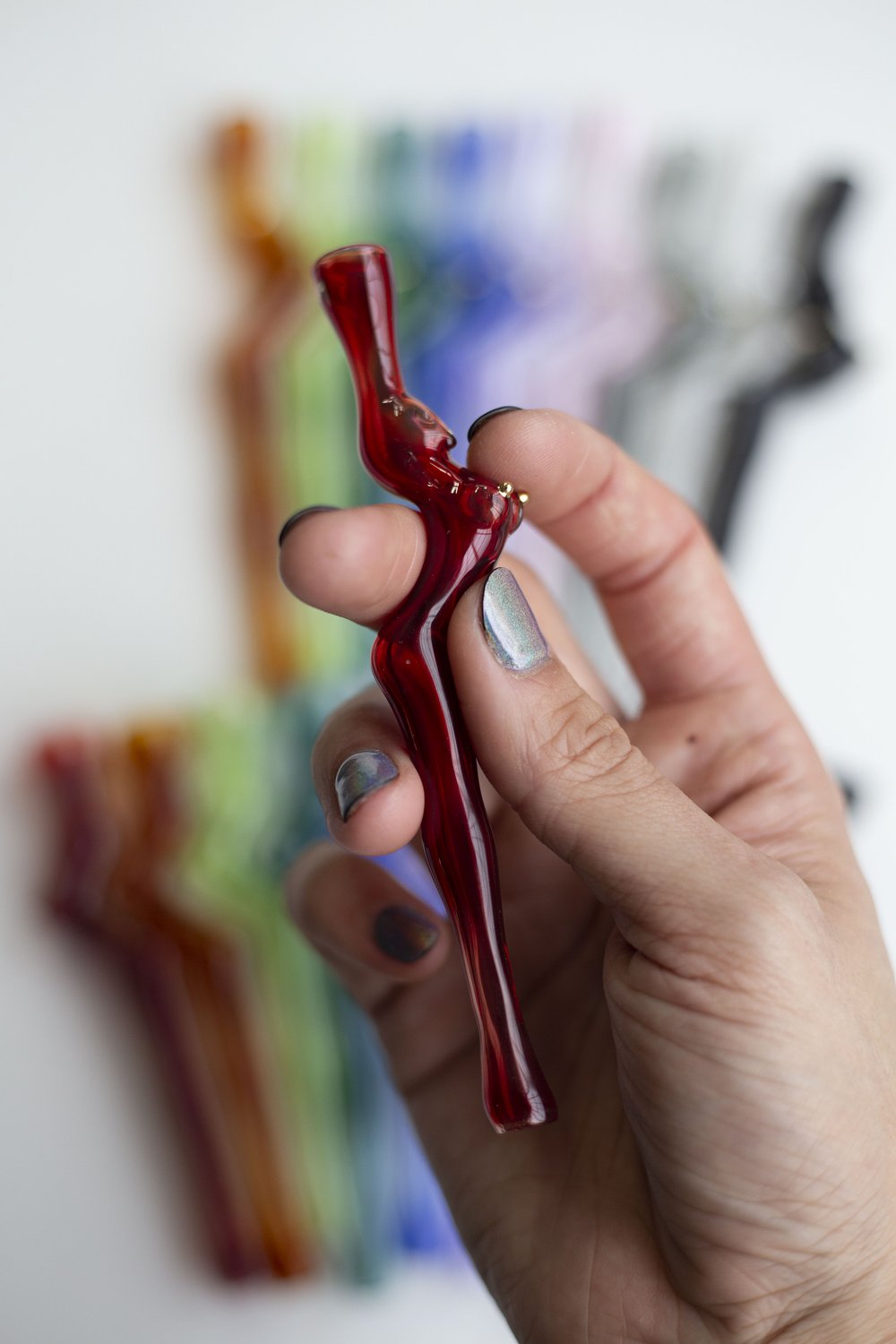 Each little lady joint holder is hand blown to order. The holder’s length is around 4”-5" long.